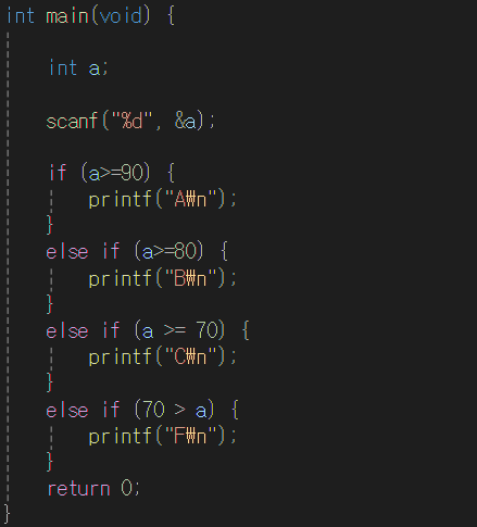 a(입력된 값)이 80점 이상 90점 미만인 B를 출력하는 부분을 보면, if문 만 사용할 땡는 if(( 90>a ) && (a >= 80))라고 해야하는 부분을