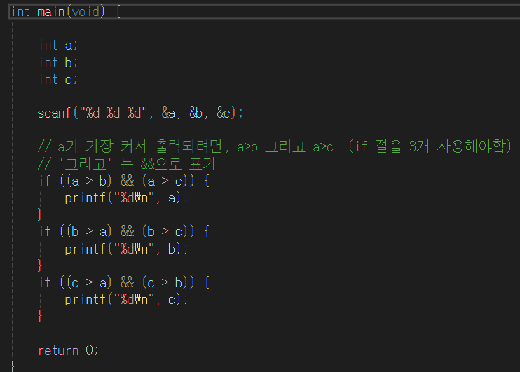 만약 a가 가장 큰 숫자라고 합시다. 그러면 'a가 가장 큰 수이면' 이 필요하겠죠.