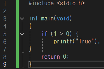 '만약 1>0이 참이라면 True 를 출력하라'는 코드입니다.