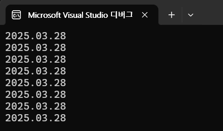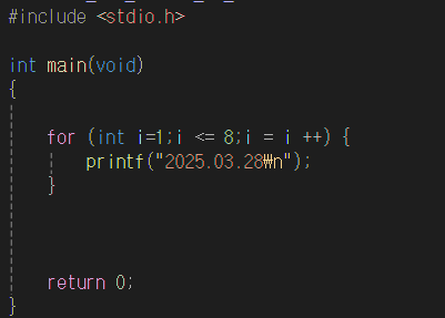 제가 만약 '2025.03.28' 이라는 문장을 딱 8번만 출력하고 싶어한다고 가정합시다.